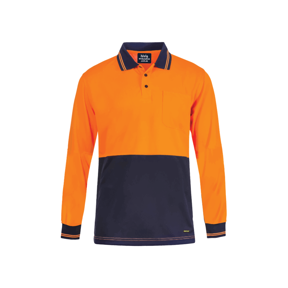 Polo Shirt Long Sleeve Orange & Navy